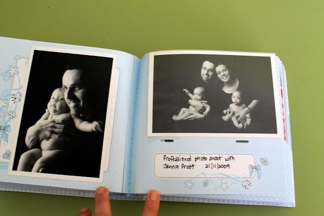 That means I was able to get 9 months of Kendra into her journal and only 7 months of Connor (he went through a really cute stage at 7 months plus he had a little hospital incident and I needed pics of the cutest little patient ever; she went through a really cute stage at 9 months)